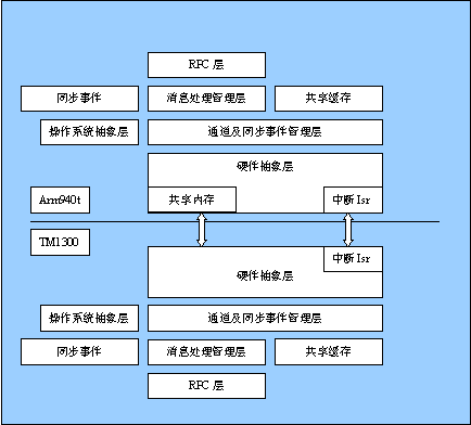 在這里我們還要專門的描述的是位于硬件抽象層里的共享內存,它只在HOST的一方存在,所有需要兩個處理器共享的數據都存儲在該區域里,包括高層的共享緩存、消息、同步事件、通道信息等數據,因此需要主機維護物理連續的、一定大小的內存,并且是處理器非cacheable的區域。