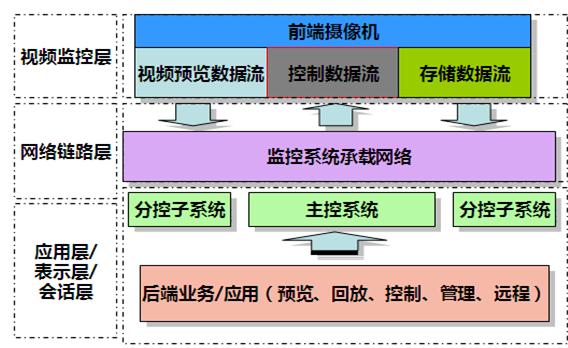 網絡高清視頻監控系統從系統構造上能夠分為視頻監控層、網絡鏈路層、監控管理業務接口層三個層次。