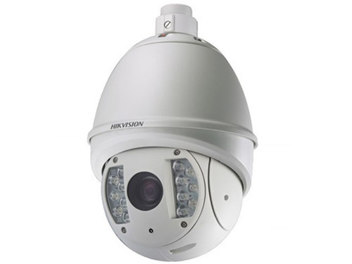 以海康威視DS-2AM1-714模擬監控攝像機為例,這是一款支持紅外燈夜視功能,日夜自動轉換的中速球機。從外觀來看,與高速球并無差別,只不過在轉速方面略顯緩慢。這款監控攝像機采用1/4英寸Sony SuperHAD CCD圖像傳感器,鏡頭焦距為3.84-88.4mm焦距,支持16倍數字變焦功能,鏡頭光圈在F1.6-F4.5之間,該監控攝像機支持低照度彩色成像為0.2Lux,黑白成像為0.02Lux。