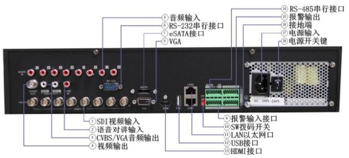 每個接口支持容量小于4TB的硬盤作為錄像盤
